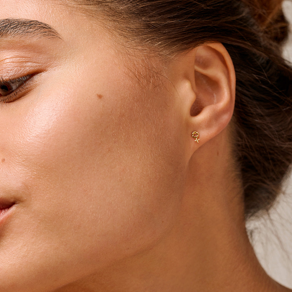 In our collection, you’ll find a wide range of single gold earrings, designed in 18k gold-plated sterling silver. These are pieces that combine high quality with an exclusive and modern aesthetic. From simple studs, perfect for a minimalist look, to more eye-catching designs with whimsical details – there is something for every style. Choosing single gold earrings gives you jewellery that stays beautiful over time while adding a touch of luxury to your outfit.