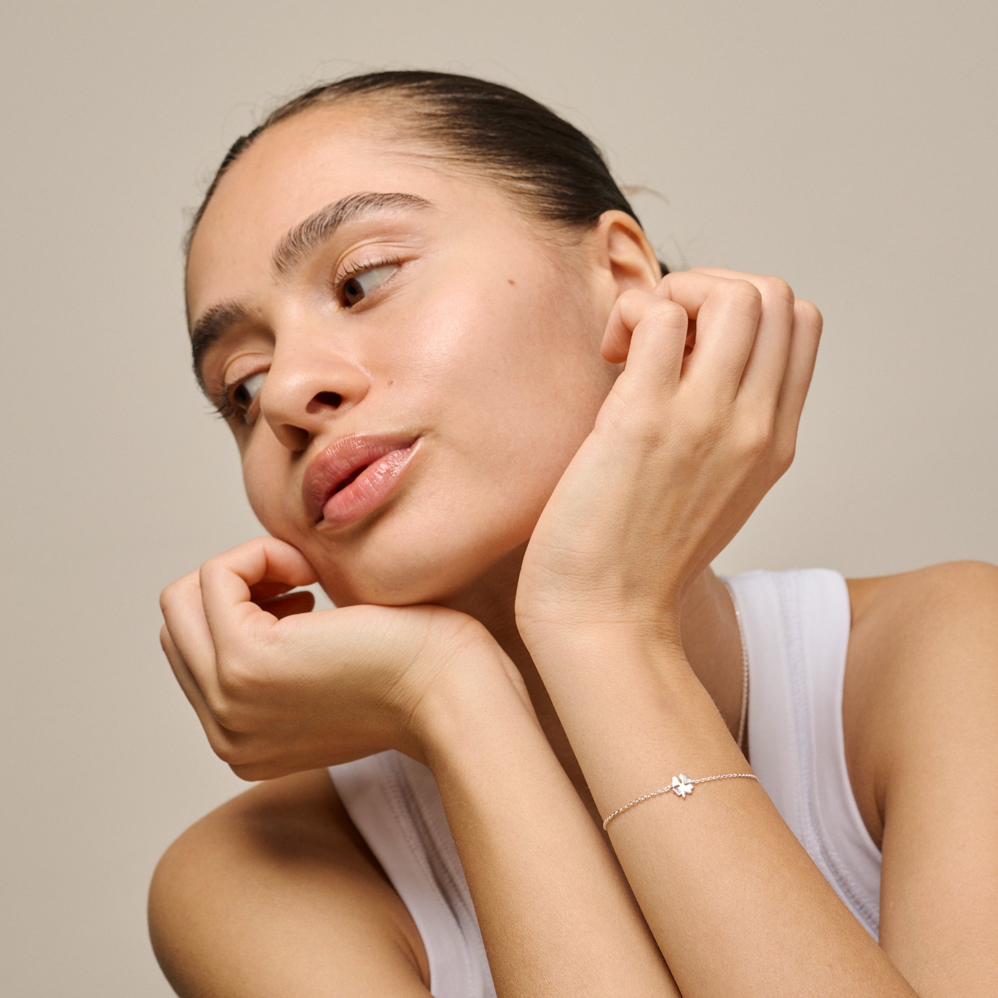 About the jewellery: Beautiful, handcrafted clover bracelet with tasteful details. The four-leaf clover is an ancient symbol of luck, bringing good fortune to the wearer. Our clover bracelet is for you, with an appreciation for detail, unique craftsmanship, and significant jewellery. The clover series is also available as stud earrings and a necklace.