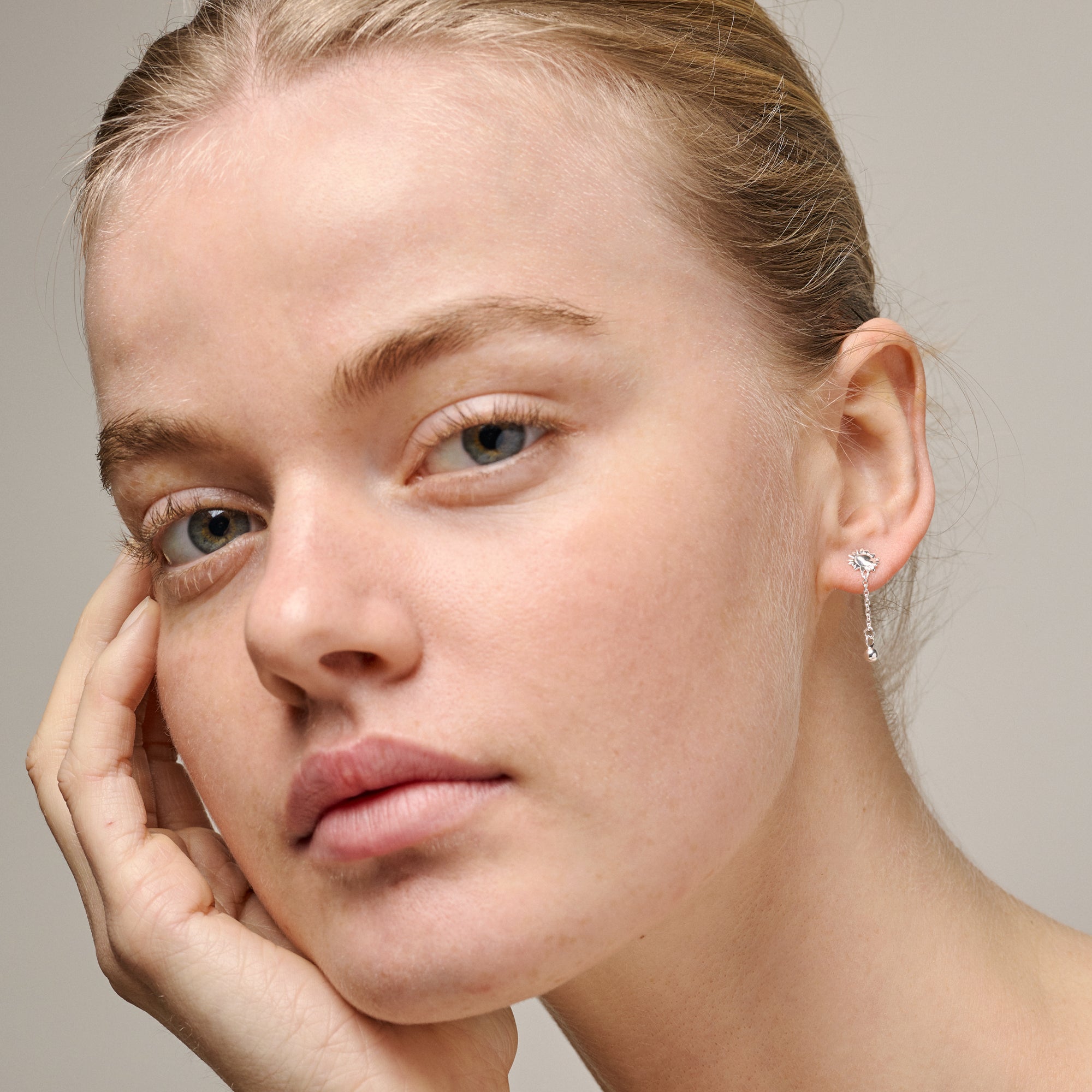 The jewelry is made of certified recycled sterling silver. This means that the material has been reused from old jewelry or other silver products, contributing to a more sustainable production.