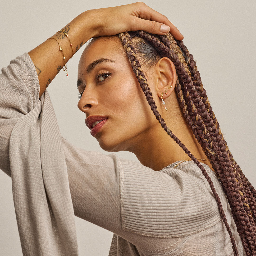 About the jewelry:Our Nara earring has a soft and sensual design where the three organic shapes blend elegantly. The expression is simple and understated, yet full of character, with the vibrant organic stones. Nara is an earring that combines natural inspiration with modern elegance and style. The Nara earring is perfect to style with other studs and earrings, especially check out our studs in the same design, which can create an irresistible and cohesive look.