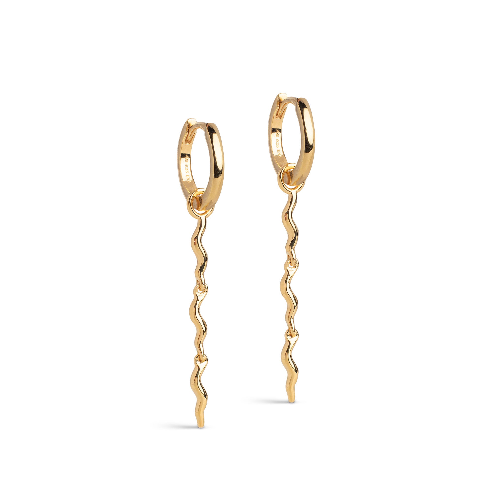 About the jewelry:Hydrus Hoop is a super fine and slim earring with a wavy pendant consisting of three small links that beautifully form an elegant whole. The earring sits in a click hoop and has a simple yet cool look, perfect for both everyday wear and more refined styling. Wear it alone or mix with other earrings for a personal look.