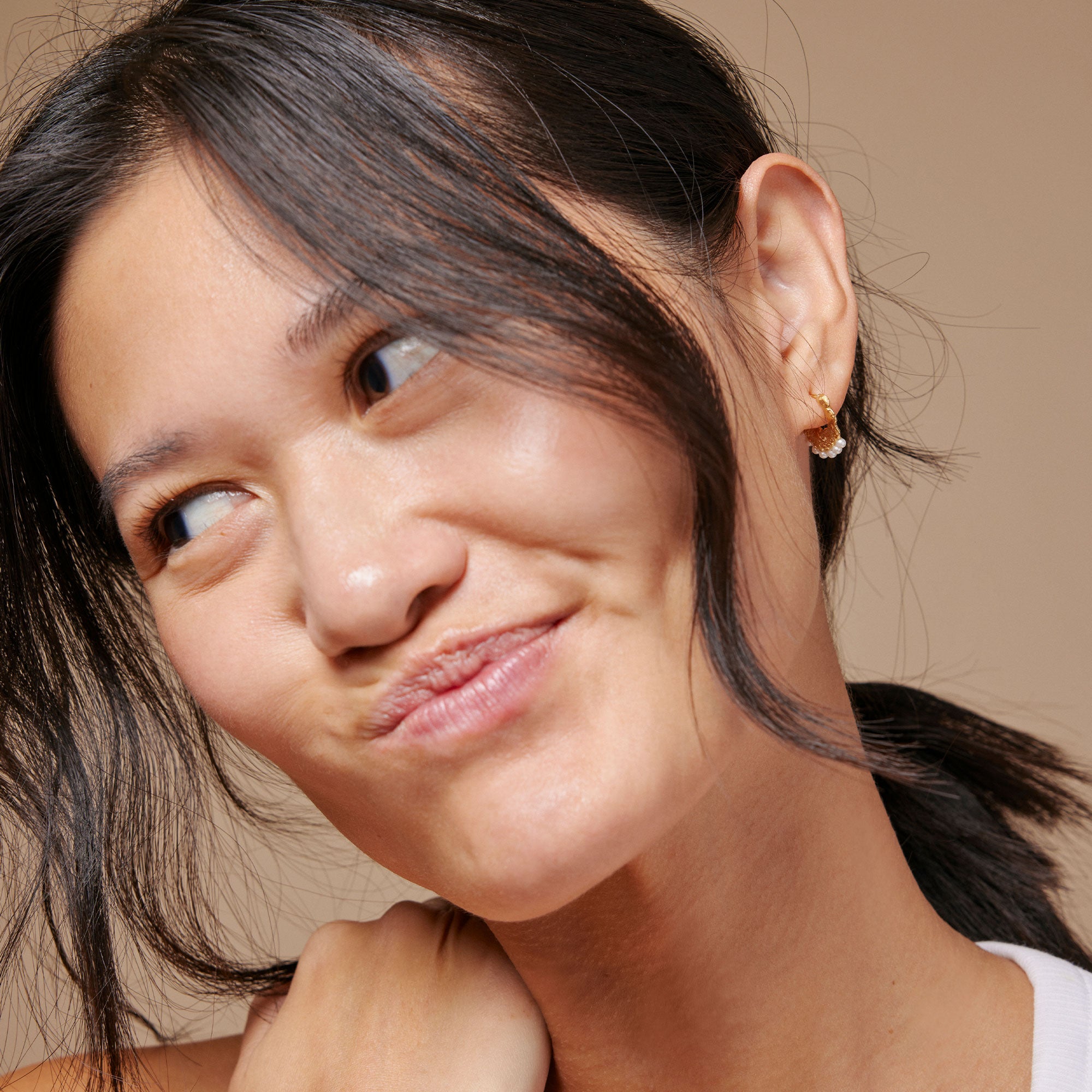 The Léonie earring is the sister of our Felie earring and is the glamorous of those two. It looks like a beautiful fan adorned with pearls. The earrings have a medium size, that makes them perfect for you who are not into big, chunky jewelry and for you who love to combine your earrings in a unique way.