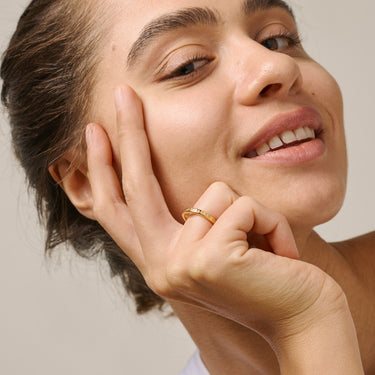 About the jewelry:Ring heart coated with 18 carat gold, is a discreet way to say 'I love you'. The ring is simple in its expression, but if you look closely, you will see tiny hearts engraved all the way around. The gold ring has a luxurious, handmade expression, which gives it a special and personalized touch. Ring heart is made of 925 sterling silver and coated with 18 carat gold.