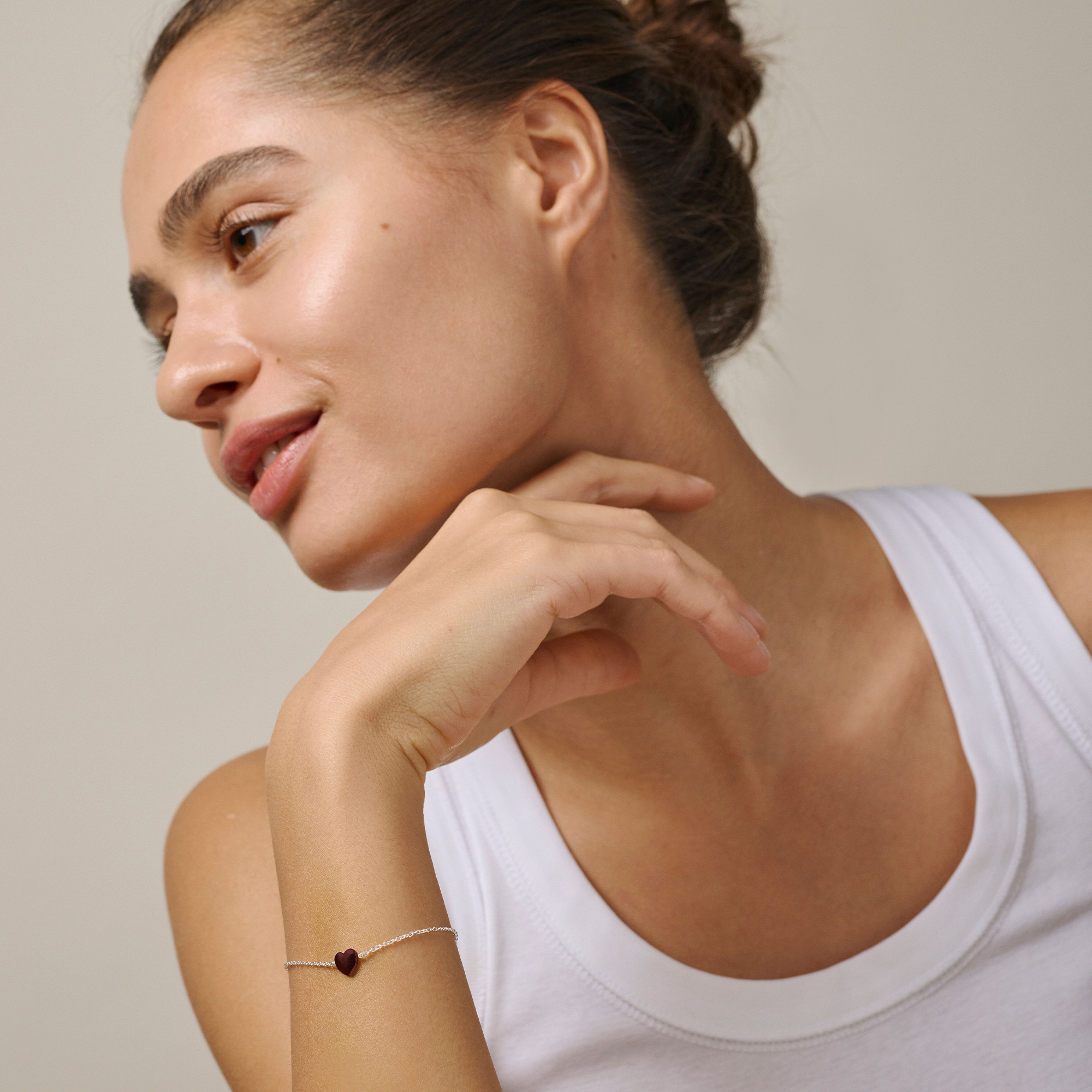 About the jewelry:Amore means love, and that's exactly what this bracelet expresses. Love for someone close to you, love for life, or love for yourself. The warm bordeaux color is a good alternative to our other classic red color. It complements the skin and the silver surface perfectly and adds a subtle and sophisticated twist, to your silver jewelry styling.