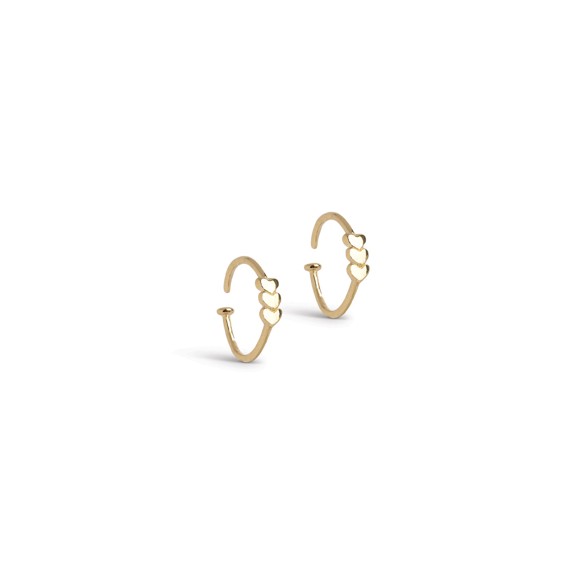 About the jewelry:Twistie Love is a sweet and simple earring with three small hearts on the front - perfect for those who want to add a loving touch to their look. The shape is ultra-thin and light. You open it by twisting the earring to each side, put it on, and twist back. Gently squeeze it together, and it sits beautifully and securely. The fine, shiny hearts give the jewelry a playful look, yet still with a clean and modern feel. Twistie Love is an affordable little favorite, ideal as an extra piercing, gift, or everyday detail. A simple twist - and a little love.